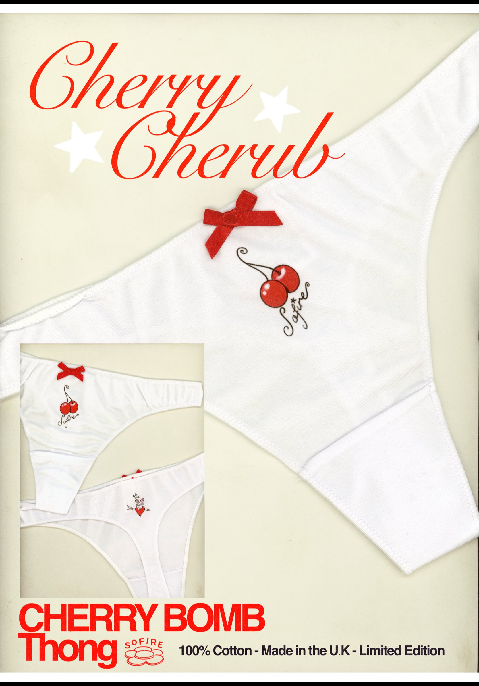Front print cherries back print cherub from iconic SOFIRE tattoo flash